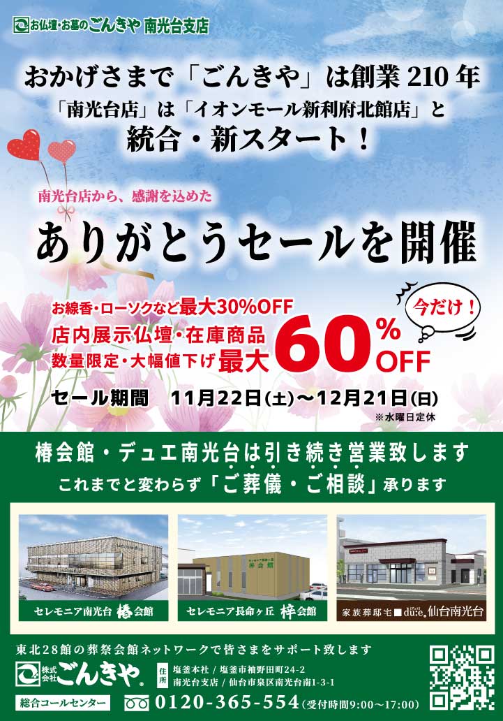 これまでご愛顧いただいた地域のみなさまへの恩返しとして事業を通じた社会貢献に真摯に取り組むとともに、葬礼文化の継承と、変わらないために変わる経営を通じて、これからも、地域でいちばん「ありがとう」をいただける企業をめざします。
