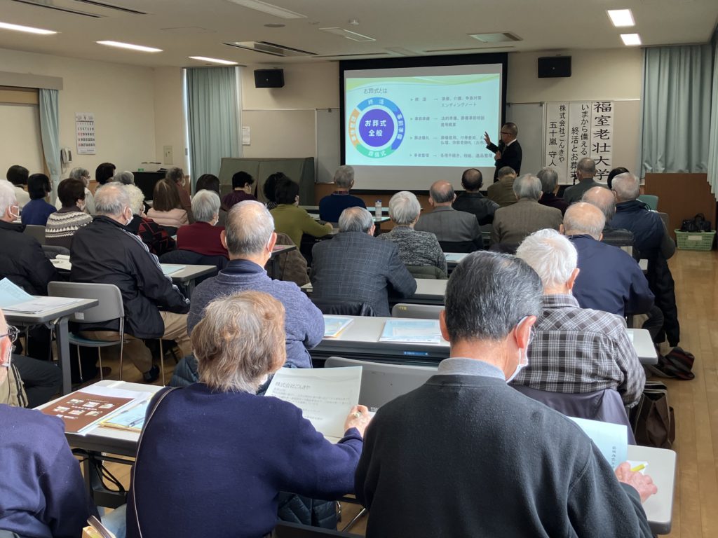 仙台市宮城野区 福室市民センター様 老壮大学にて、弊社スタッフが終活とお葬式ついてお話しいたしました。